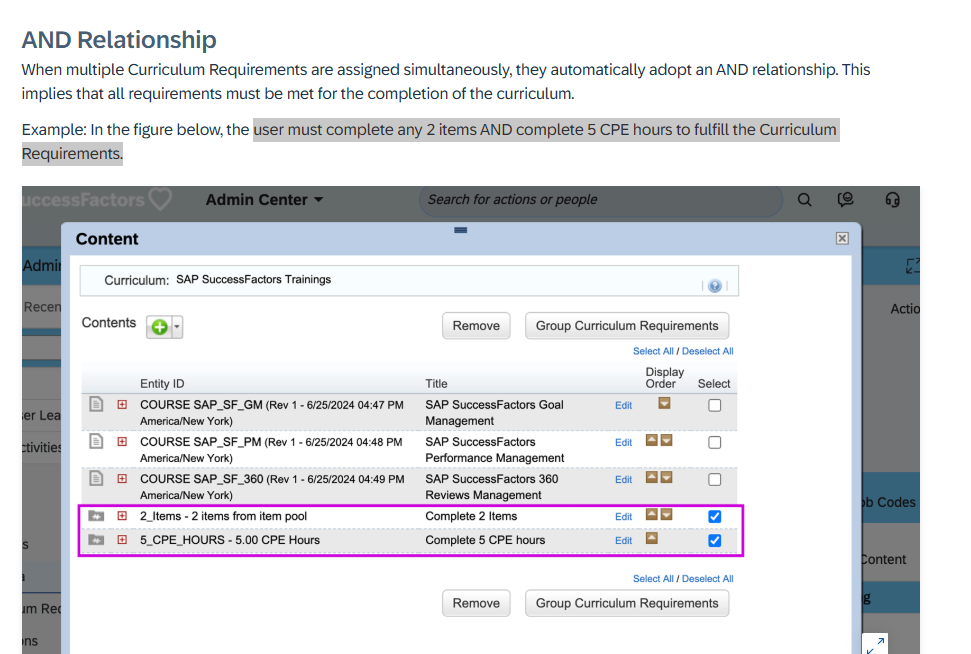 - X “When more than one curriculum requirement has been associated to the curriculum”