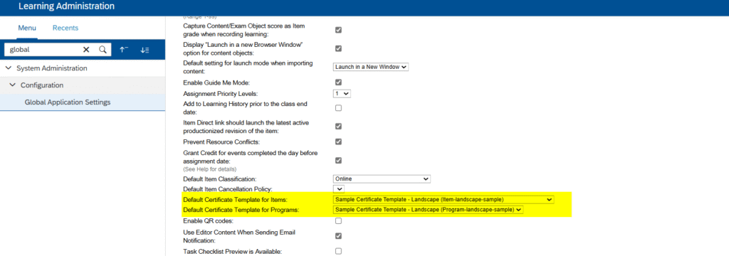 Entities like Items and Programs can be configured to automatically link to a specific certificate of completion.