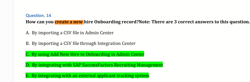 How can you create a new hire Onboarding record? Note: There are 3 correct answers to this question.