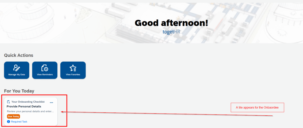 Upon completion of the NHDR, a welcome message is sent to new hires with information about accessing the SAP SuccessFactors HCM Suite and getting started with onboarding related activities.