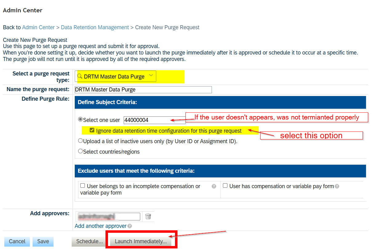 FOR IT TO WORK, THE USER WHO ISSUES THE DATA PURGE FROM “DATA RETENTION MANAGER” MUST HAVE ADMINISTRATOR PERMISSIONS IN LMS!!!!!!!!!!!!!!!!!!!!!!!!!