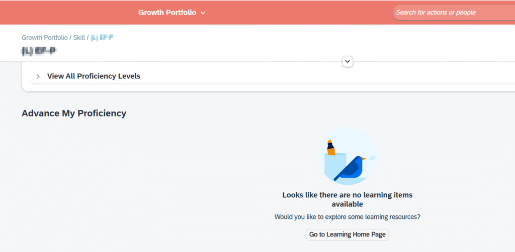 Ensure that the Enable the Advance My Proficiency section in the Growth Portfolio option is enabled under Admin Center Company System and Logo Settings