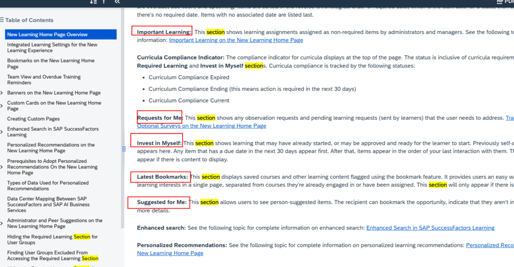 Which sections are accessible to users from their Home Page in SAP SuccessFactors Learning?