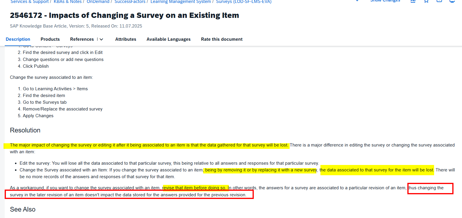 THR88 – An Administrator is trying to link a new feedback survey to a recently completed training course in the SAP SuccessFactors Learning Management System. However, a warning message indicates that there is already an existing survey associated with this training course.