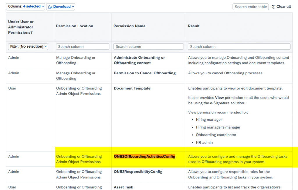 What does the ONB2OffboardingActivitiesConfig permission grant to a user?